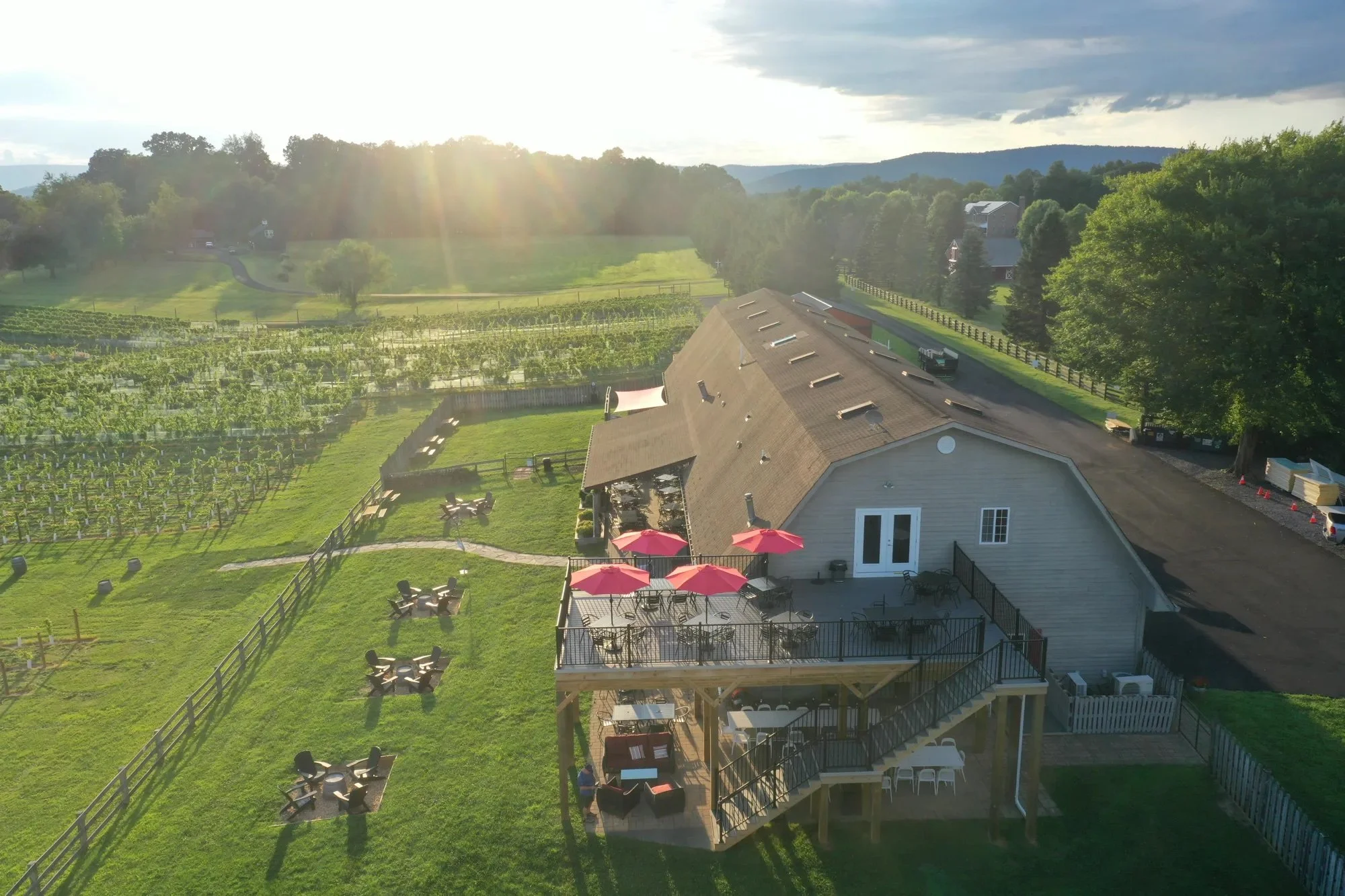 Sunroom with lots of light and adjoining outdoor patio covered by tent lined with cafe lights at the end of W&OD trail